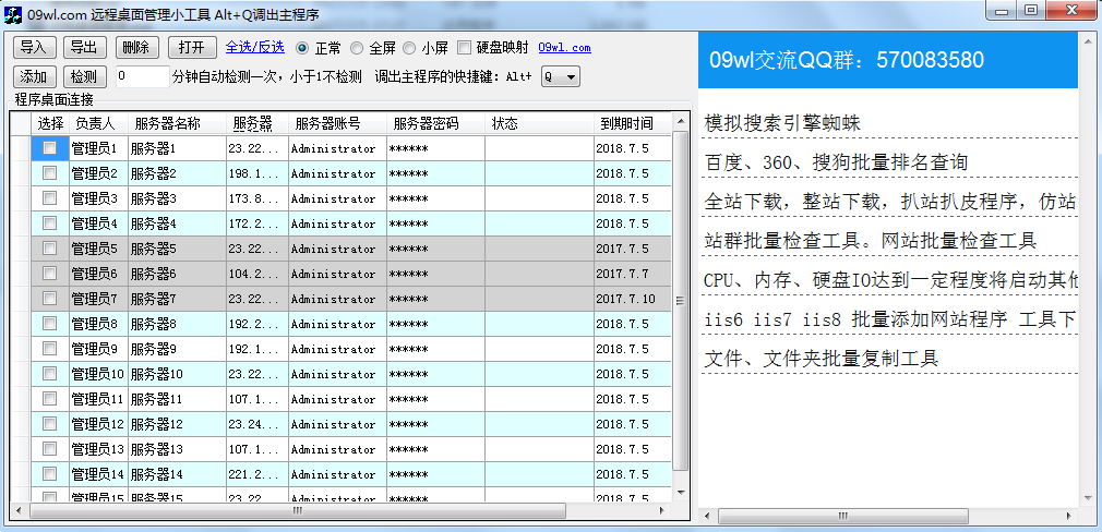 服务器使用人,服务器名称,服务器远程IP和端口,服务器账户,服务器密码,到期时间,其他备注,其他备注,其他备注